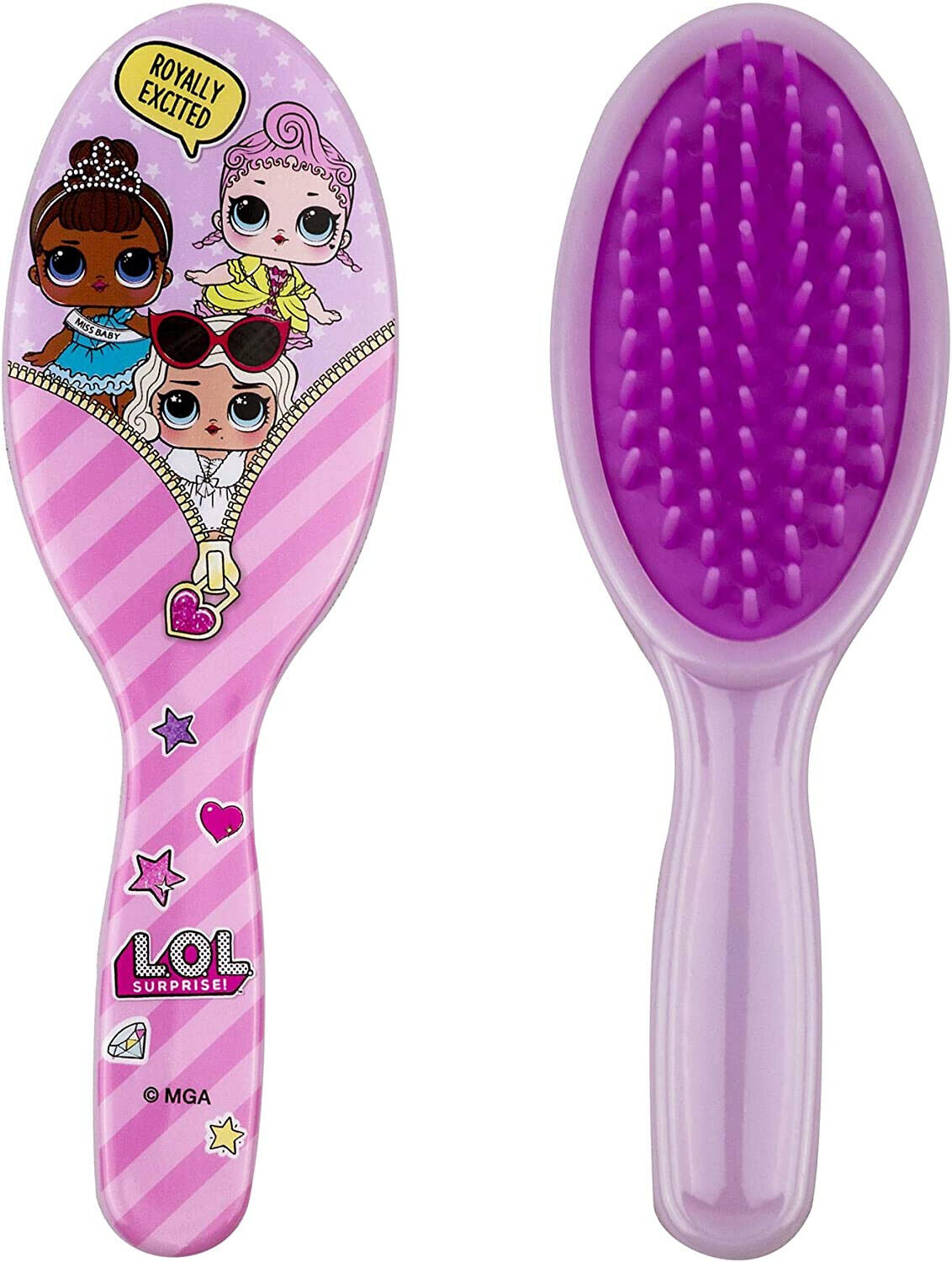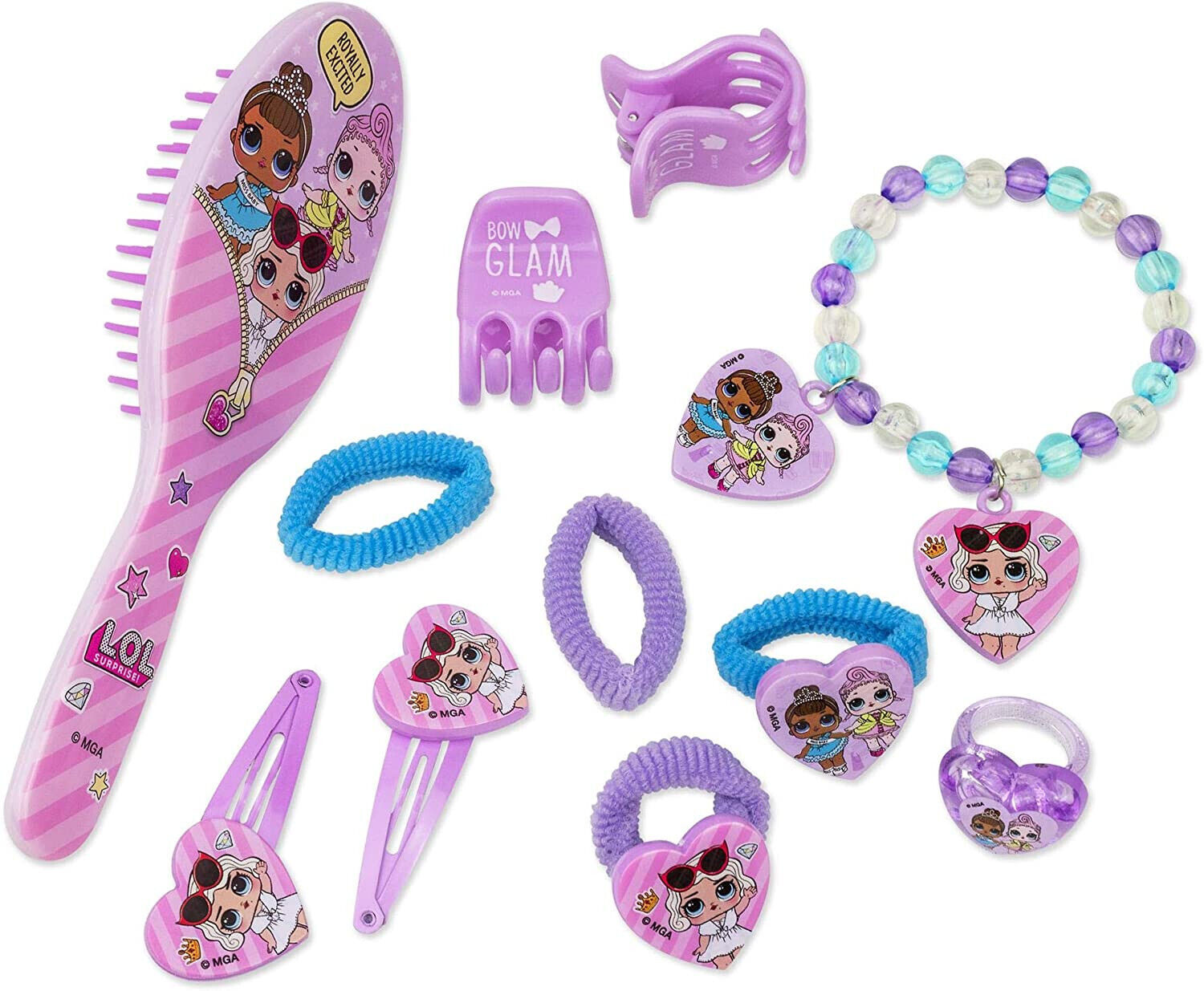 COLOURFUL SET: 11-piece beauty set for kids includes 2 Hair grips,1 Bracelet, 4 Hair Bands, 1 Hair Brush and 2 Hair Clips with kids favorite L.O.L Surprise dolls printed on them.